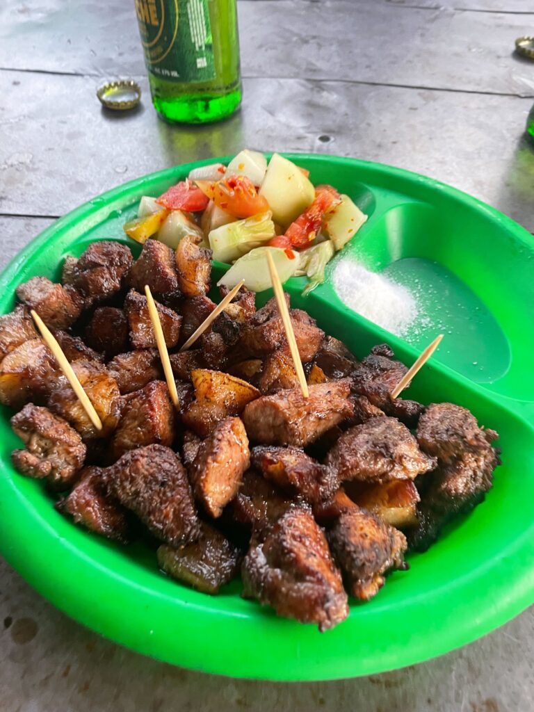 ビールたくさん飲んでも安いし、焼き立ての豚肉やソーセージ、オムレツや焼きバナナが絶品です!